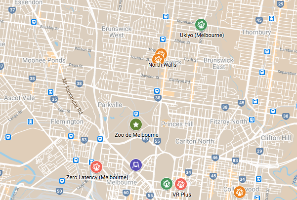 Au nord, on y trouve Ukiyo (classé meilleur escape game de la ville pour la richesse et la complexité de ses aventures), Lost Australia Station (connue pour ses salles à grande capacité) ainsi que Northwalls et Brunswick Northside Boulder (deux salles d’escalade voisines). C’est également là que l’on peut visiter le Melbourne Zoo (et ses animations nocturnes) et le Royal Park Nature Play, une des meilleures aires de jeu en plein air de la ville. Enfin, on y trouve Zero Latency, Virtual Room et VR Plus (attractions de réalité virtuelle).