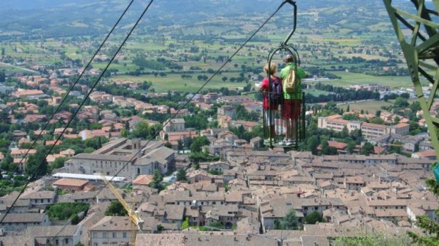 - Enfin, véritable petite curiosité découverte en Ombrie, au cœur de l’Italie, le téléphérique de Gubbio (funivia Colle Eletto) que l’on emprunte en position débout ! Sensations assurées.