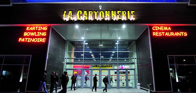 La Cartonnerie, située à Dammarie les Lys à coté de Melun (77) est un autre exemple de reconversion industrielle. Son nom provient de l’ancienne occupation du site, la cartonnerie Devoisselle, active des années 60 à 2001, année de sa fermeture. Pour redonner vie à cette friche de 12 ha et à sa halle carrée de 100 mètres de coté, un concours est organisé et aboutira, en 2009 à l’ouverture de cette « Fabrique à Loisirs » dans un format inédit avec l’association de loisirs publics et de loisirs privés opérés de manière autonome.