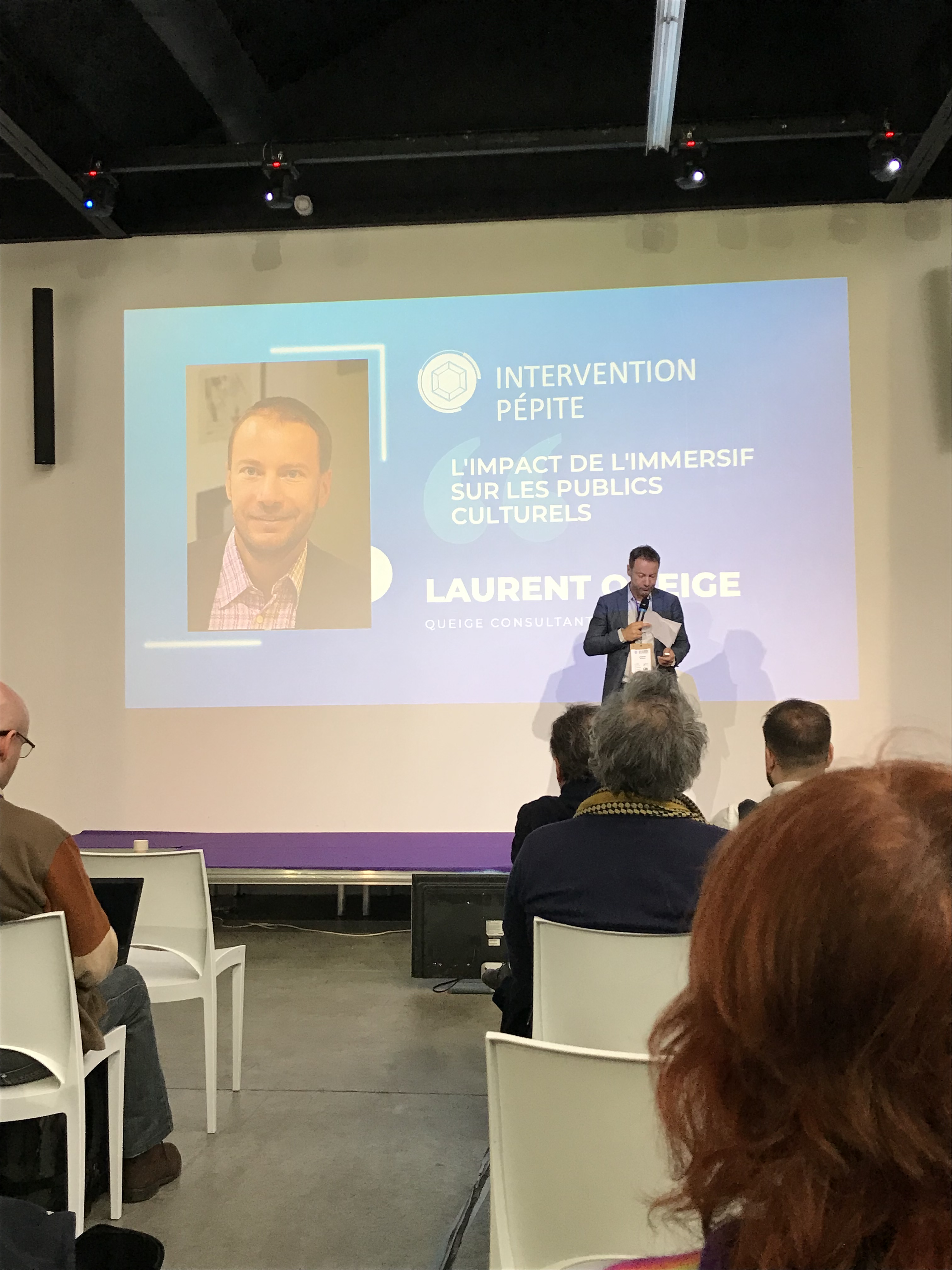 Les séances plénières permettent d’introduire et de donner la parole à plusieurs intervenants de renom. Une introduction brillante de Mael Magat nous rappelle que les expériences immersives n’existent pas objectivement et qu’elle ne le sont que si le public les a ressenties comme telles ! Pour ce faire, on peut compter sur la palette des émotions proposée par Pigalle Tavakkoli qui recommande d’ailleurs de l’utiliser dans toute sa gamme, y compris celle qui peut déranger ! Ou par l’histoire, dont Alain Thys nous rappelle qu’elle peut donner de la valeur et du sens même à l’objet qui semble le plus insignifiant (merci pour la bague !).