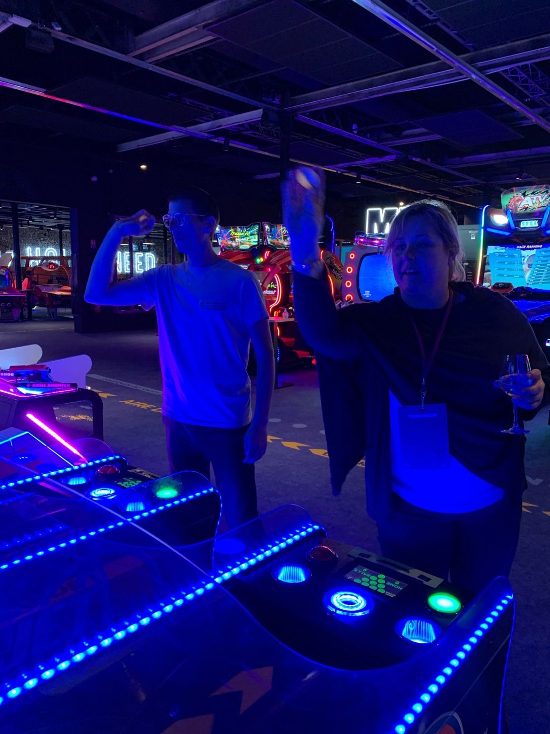 La soirée a permis de tester quelques jeux comme le très fun Racing Bug, l’arène Vex et quelques bornes d’arcade.