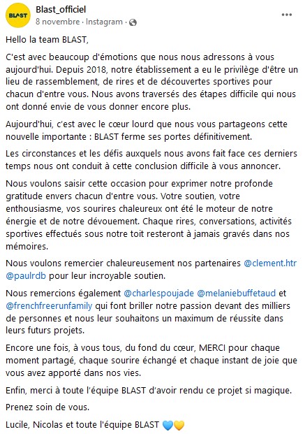 C’est la fin aussi pour Blast ! Annoncée sur les réseaux sociaux, cette fermeture concerne le premier site de Pantin et le second récemment ouvert à Carré Sénart. La belle aventure d’un lieu consacré au parkour indoor est à retrouver avec le portrait de Lucile Gretzinger.