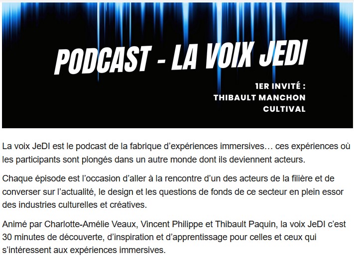Lancement officiel de la filière expériences immersives JEDI avec plusieurs temps forts à venir :